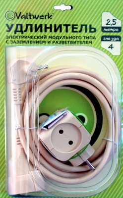 Удлинитель 3х1.5 с заземлением, длина 2.5 м, один пост, комплектуется разветвителем на 4 поста, цвет - бежевый, Гибкие провода изготовлены из меди класса "А", Изоляция и оболочка ПВХ, прорезиненная вилка и розетка. ГОСТ. Сертификат соответствия требованиям Технического регламента Таможенного союза ТРТС 004/2011 "О безопасности низковольтового оборудования". Напряжение - 220 В